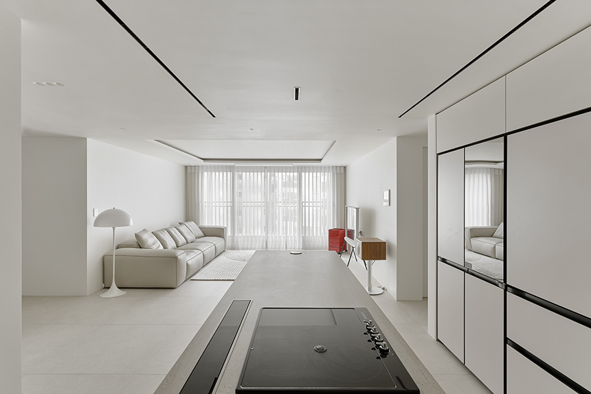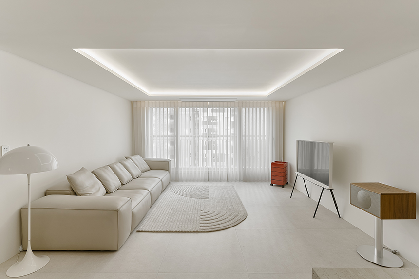 화이트를 기반으로 한 인테리어는 ‘정돈된 삶’과 ‘편안한 여유’를 공간으로 표현한 결과물이다. 레드플로어디자인은 하루의 끝에서 온전히 자신에게 집중할 수 있는, 조용하고 깊은 쉼의 공간을 완성했다.