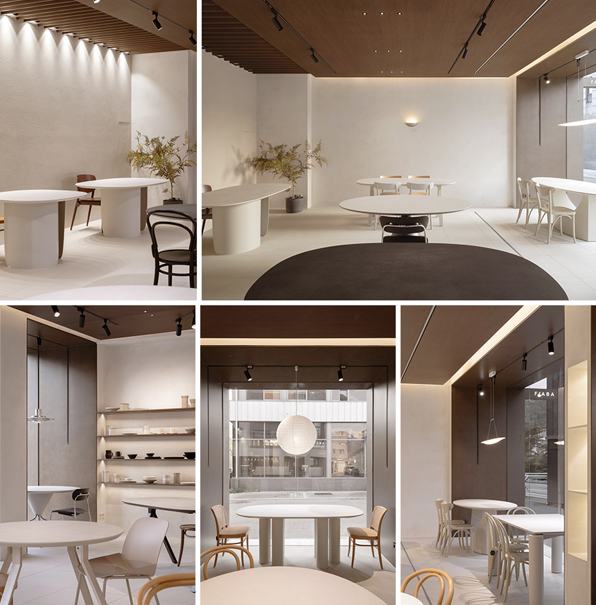 쇼룸 안에 배치된 테이블과 의자들은 각자 독립된 오브제로 전시되지만, 공간의 동선과 시선의 흐름을 고려해 배치되어 서로 유기적으로 연결된다. 각각의 피스가 공간의 일부로 어우러지면서도 독자적인 존재감을 발하는 미묘한 균형을 추구한 결과다. 미니멀한 형태와 부드러운 곡선, 따뜻한 소재의 조화는 피아바가 제안하는 이상적인 일상 ‘우아함 속의 편안함’을 자연스럽게 드러낸다.
