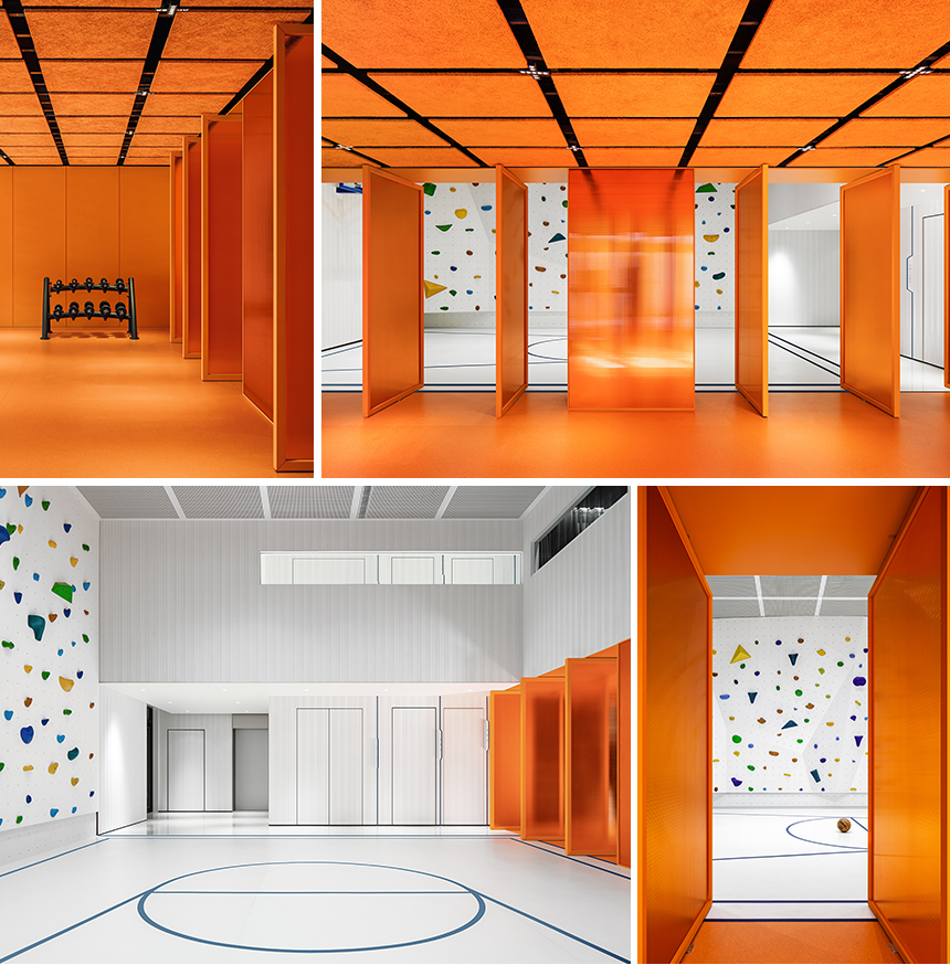 최하층에는 직원 복지와 건강을 위한 공간으로 조성됐다. 농구 코트, 암벽 등반벽, 피트니스 시설 등이 마련되어 있으며, 이는 업무 스트레스 해소와 신체 건강 증진에 중요한 역할을 한다. 중간층에 마련된 프라이빗 연회 공간은 공간 전체가 곡선 형태의 커튼으로 둘러싸여 있으며, 중앙에는 바 형태의 카운터가 배치되어 있다. 공간은 링난 지역의 접대 문화와 환대의 전통을 현대적으로 재해석하여 은밀하면서도 아늑한 분위기 속에서 식음료 서비스와 친밀한 모임이 이루어질 수 있도록 설계되었다.