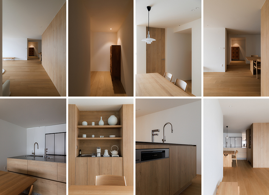 집의 중심축은 거실과 주방을 잇는 복도다. 기존 중문과 벽체로 단절되어 있던 동선을 정리하고, 시선이 자연스럽게 이어지는 열린 구조로 재구성했다. 천장의 높이를 조정해 공간의 흐름이 한결 안정감 있게 정돈되었고, 거실에서 주방으로 이어지는 리듬감이 부드럽게 이어진다.