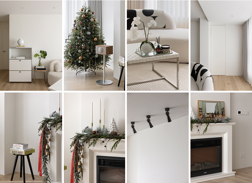 전체적인 톤은 화이트와 베이지 계열을 바탕으로 따뜻한 우드와 고급스러운 대리석을 포인트 소재로 사용해 심플하면서도 이국적인 분위기를 자연스럽게 연출했다. 캘리포니아 얼바인에서 오래 거주했던 클라이언트는 크리스마스 시즌마다 집을 가득 채웠던 장식과 그 시절의 추억을 떠올렸다. 집안 곳곳에서 볼 수 있는 크리스마스 장식은 클라이언트의 센스와 향수를 불러일으키며 보는 사람으로 하여금 설렘을 준다. 오브제와 소품, 플라워 데코까지 세심하게 연출된 장식은 사용자만의 취향과 정서를 섬세하게 담아내고 있다.