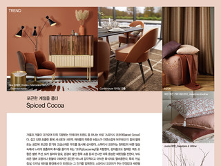포근한 계절을 품다Spiced Cocoa가을과 겨울이 다가오며 더욱 각광받는 인테리어 트렌드 중 하나는 바로 ‘스파이시 코코아(Spiced Cocoa)’다. ...