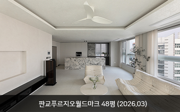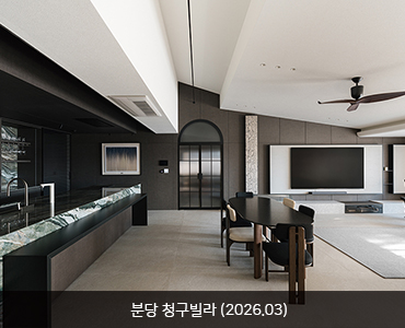 색을 비우고 깊이를 채우다(1) 방배 래미안 아트힐 - BLACK PROJECT (2026.02)블랙 프로젝트에서는 블랙 원목마루, 라빠또 세라믹, 컬러 미러, 블랙 유리벽돌 등 서로 다른 성격의 블랙 소재들이 조합되는 과정에서 빛의 반사율과 무게감의 차이를 기준으로 구조화된다.